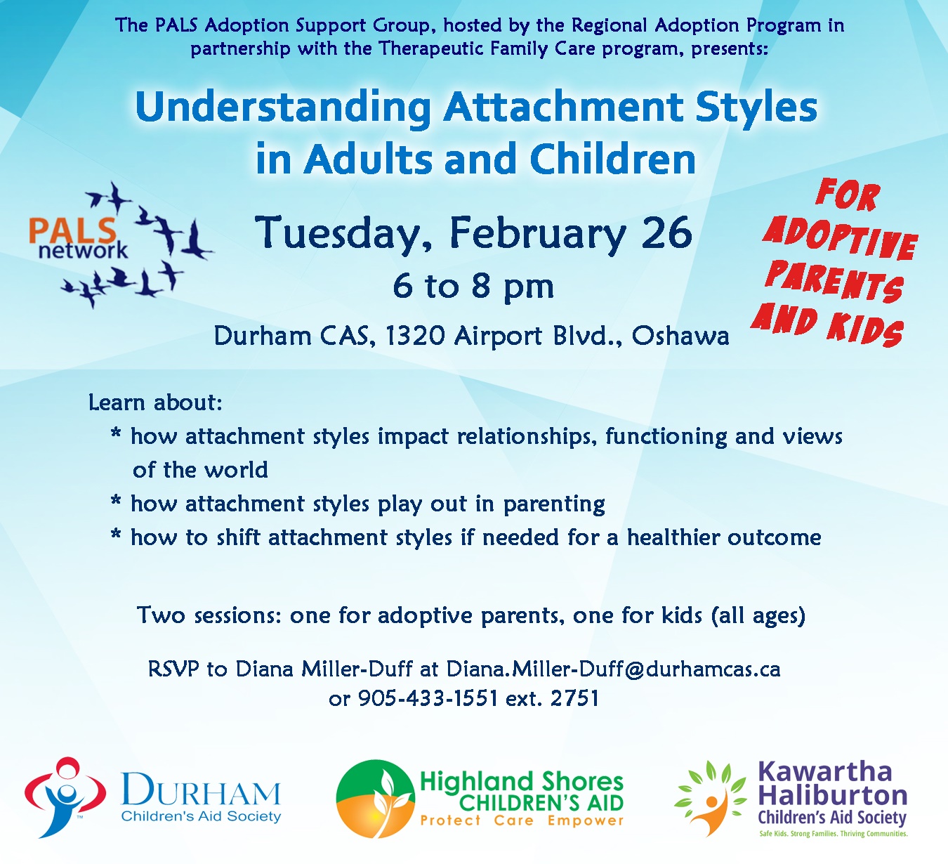 Join us on Tuesday, February 26, 2019 as the PALS Adoption Support Group presents:  Understanding Attachment Styles in Adults and Children.