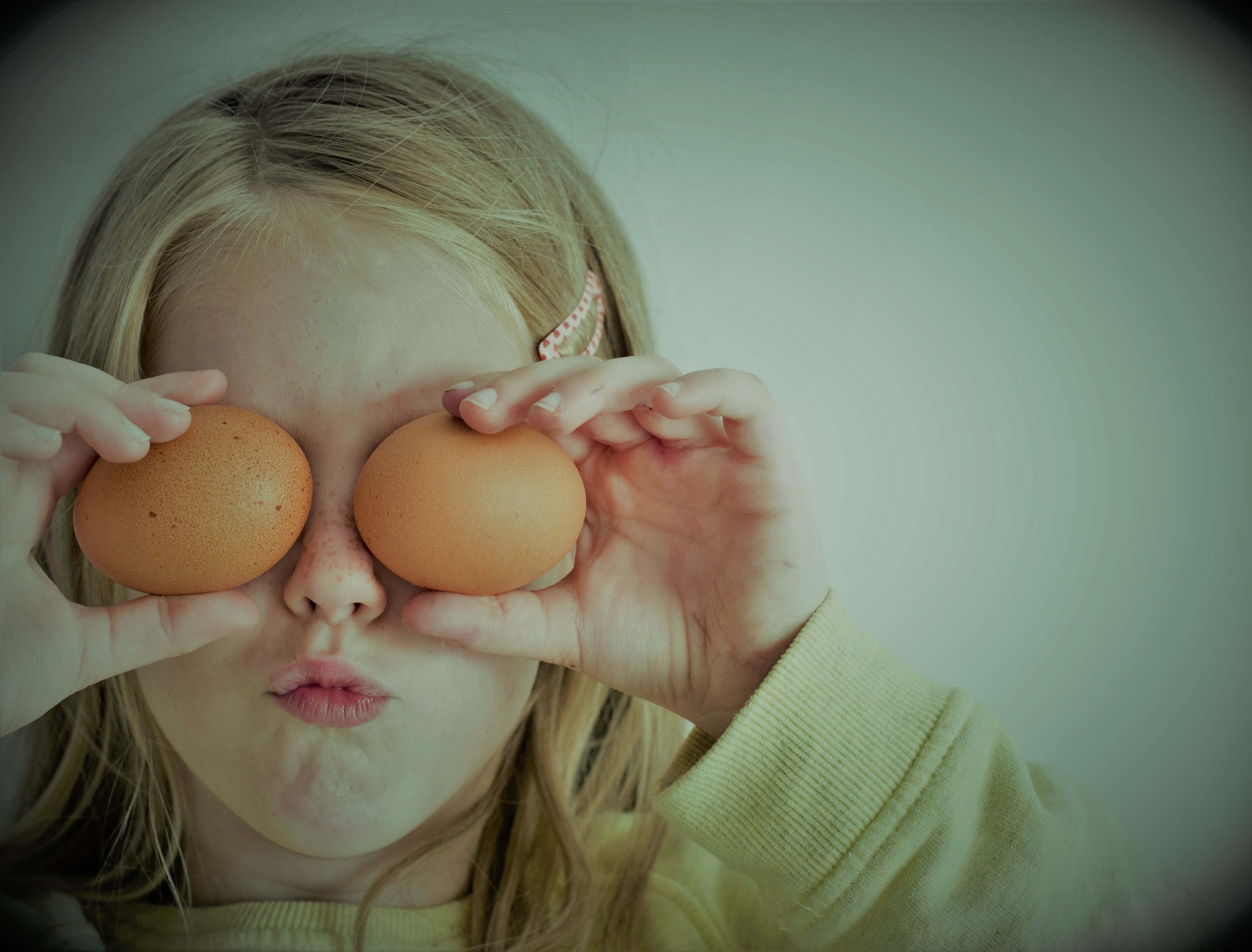 Previous ImageNext Image hannah-tasker-333889 KHCF Who we are banner A blond girl holding two brown eggs over her eyes while pursing her lips